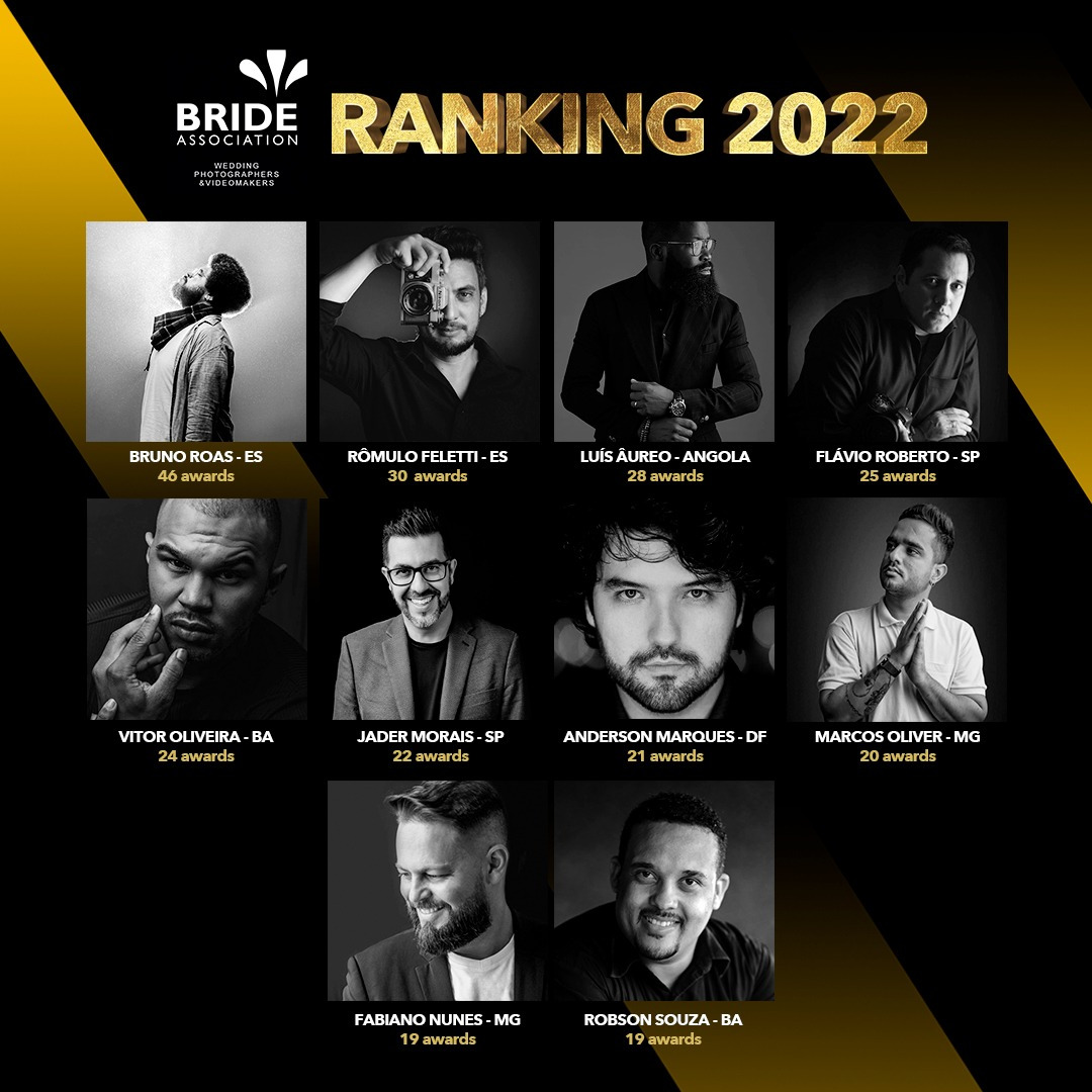 Depois de alcançar o título máximo do Prêmio Bride: Best Photographer. Estamos no Top 10 da Bride Association e no Top 5 da Fine Art ao lado de nomes consagrados da Fotografia, no ranking 2022.