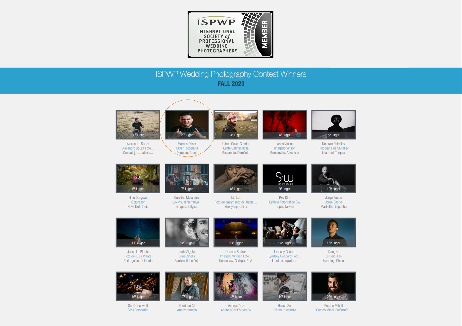 Com enorme alegria, compartilho a minha notável conquista de figurar entre os cinco melhores no ranking anual da ISPWP, a maior associação de fotógrafos de casamento do mundo. Orgulho-me de ser o único fotógrafo brasileiro a alcançar esse feito.